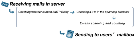The spam rule in CommuniLink is accurate and it just takes a few seconds for processing. You will receive email without any delay. The process of Anti-Spam System is listed as follows: